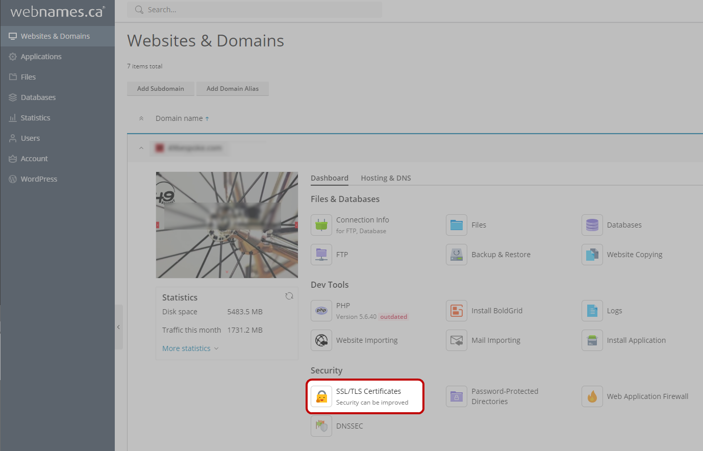 - Once logged in, go to theWebsites & Domains and click onSSL/TLS