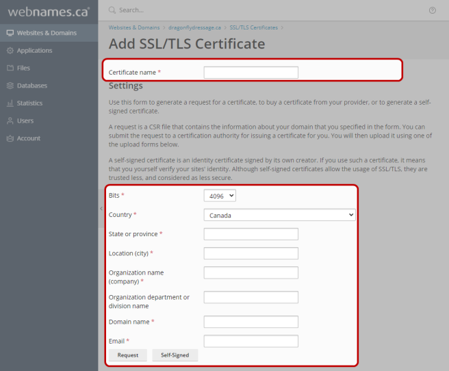 Steps to Generate A CSR KEY ON Webnames Hosting