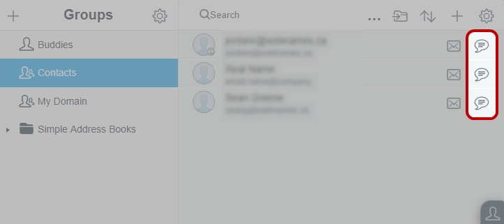 There are many spots in webmail from where you can start a chat: Just click on the Chat icon (bubble).