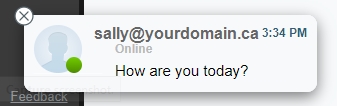 If you are currently in a different app within webmail, a message box will pop up to notify you about new incoming chat messages.