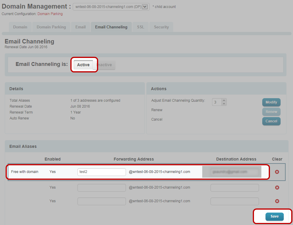 To manage your domain's email channeling address(es):