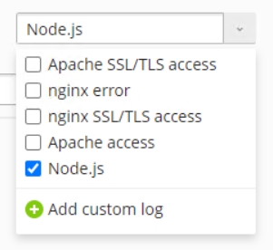 You can view logs of Node.js applications in Log Browser. To do so, go to Websites and Domains > domain with an installed Node.js application whose log you want to view > Logs.